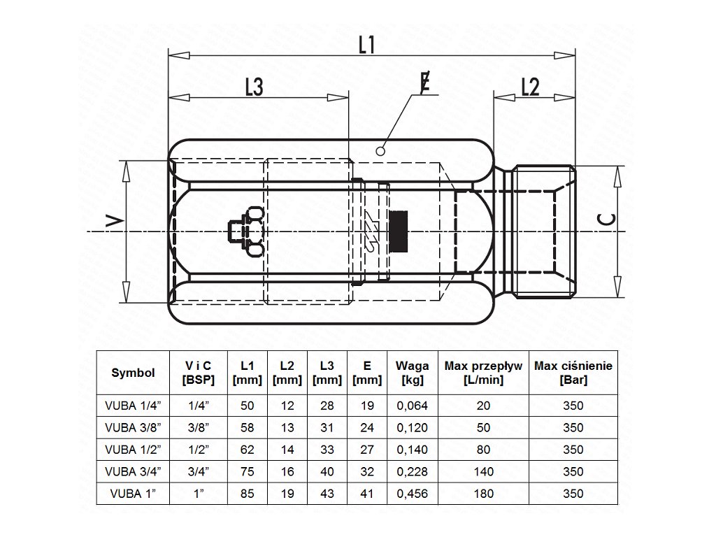 KOMPLETNÝ HYDRAULICKÝ BEZPEČNOSTNÝ VENTIL VUBA AB 1/2"